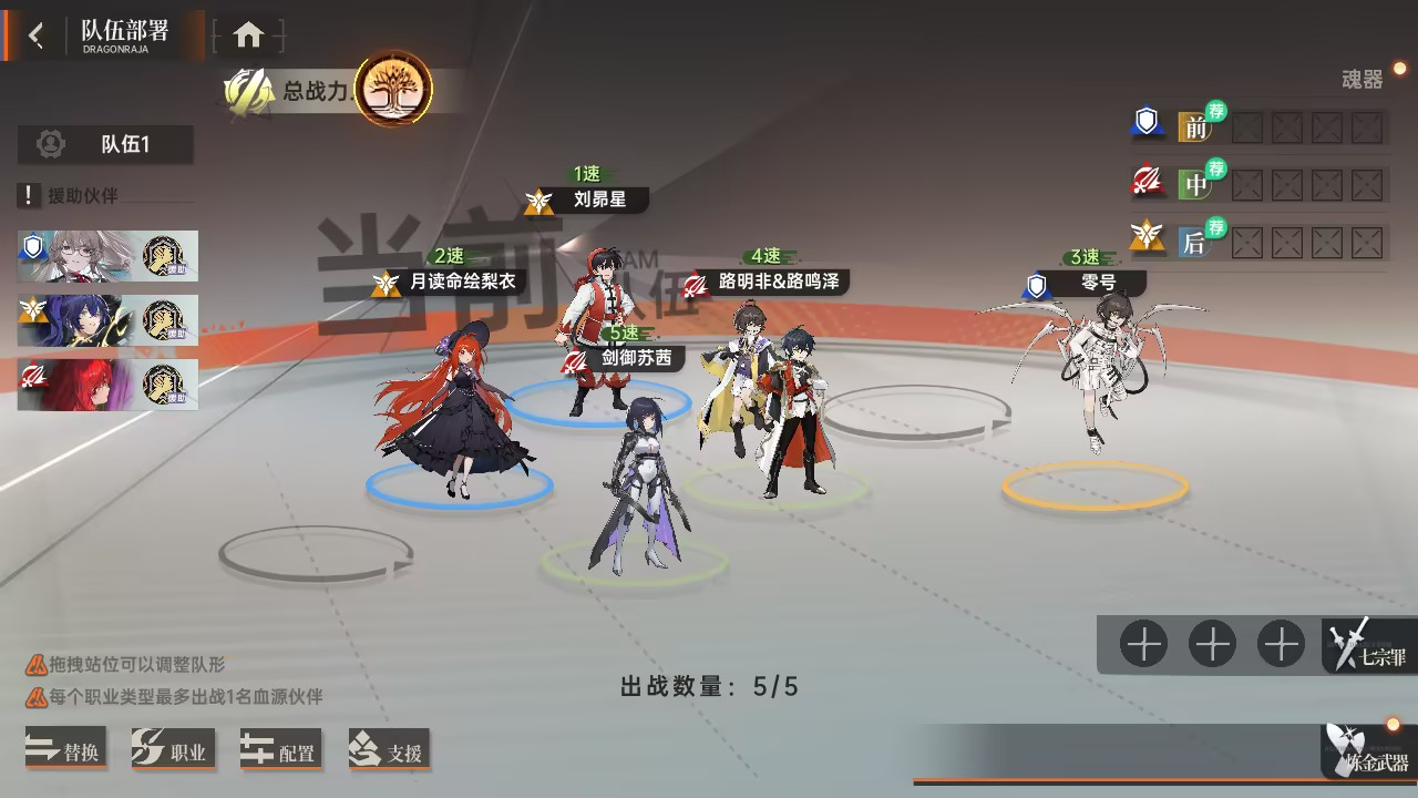 本套阵容可极大的发挥【路明非&路鸣泽】的作战能力,【剑御苏茜】可以使【路明非&路鸣泽】的行动次数上升,从而打出更多的普攻,【隐狩矢吹樱】可以协助其更快速的释放言灵,【路明非&路鸣泽言】灵后可强化自身,进入【神谕时刻】状态,并强化自身普攻为单排生效快速造成多次伤害,同时【路明非&路鸣泽言】得多次行动均可触发【刘昴星】的技能快速添加【食韵】增益效果,使其强化自身各项能力。