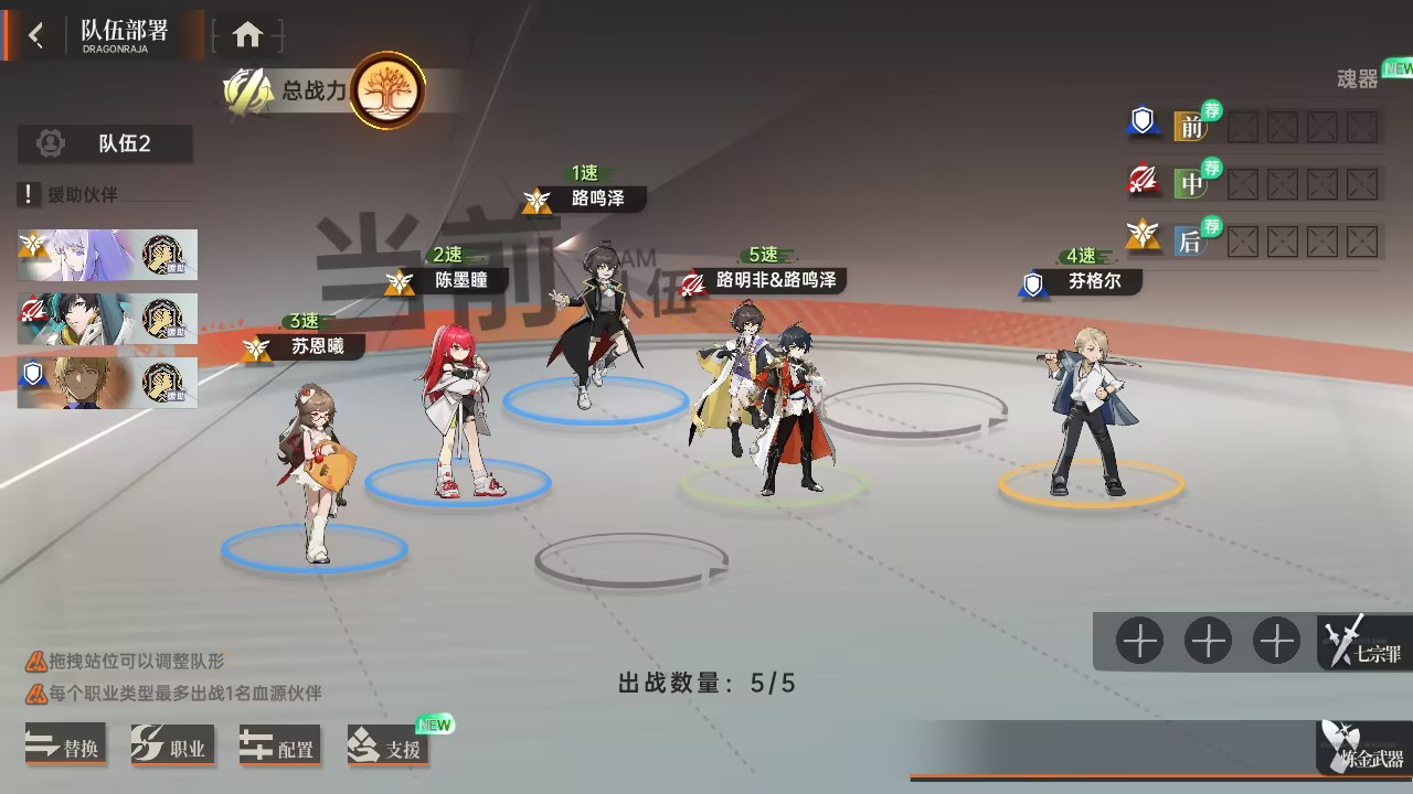 新人专员可使用【路明非&路鸣泽】作为强力的攻坚角色,在推图开荒或竞技场中能够成为前期队伍的绝对核心!通过3名辅助角色的“三保一”体系,使【路明非&路鸣泽】能够快速释放言灵且提高的提升了生存能力,是新人前期推图竞技的必备选择!