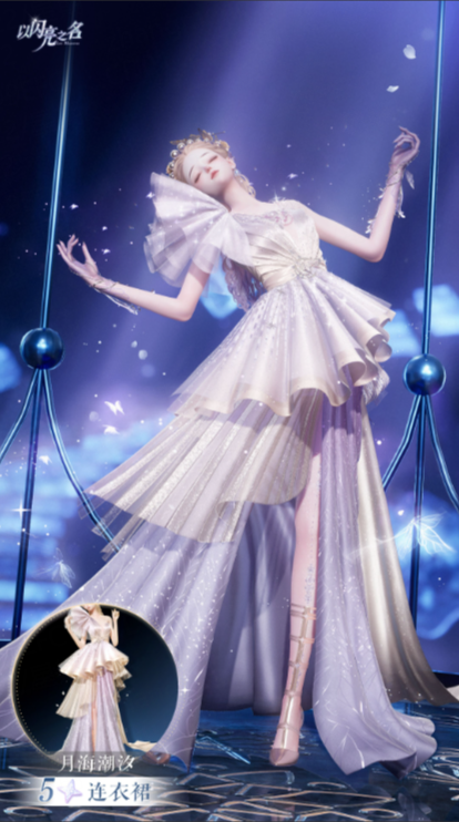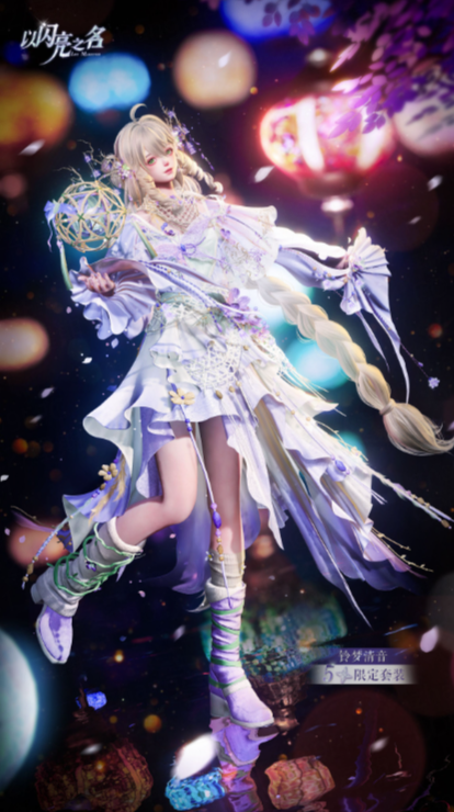 全新版本中的这套五星时装是从山野雾汽里迸出的灵韵,这套时装以淡紫与奶白为底色,把铃兰、蝴蝶的自然气息,和非遗滚灯的传统温度,揉成了能穿在身上的轻盈浪漫。