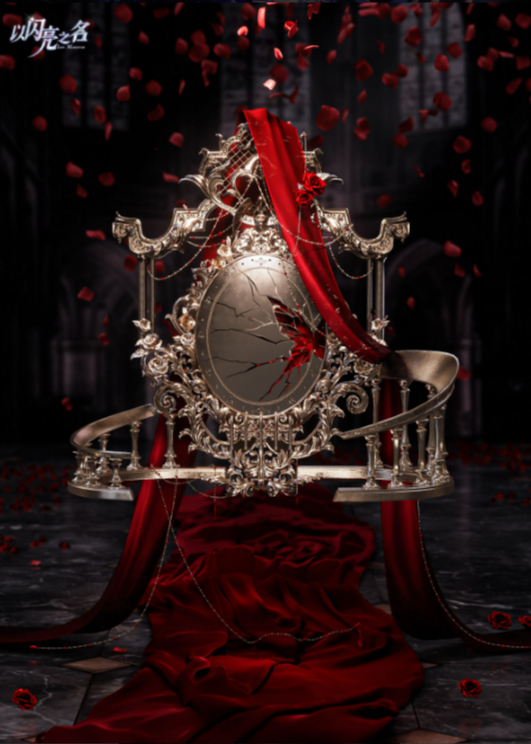 技术突破则让真实沉浸感直抵神经,背饰的破碎镜面以实体模型拼接裂痕,每块碎玻璃的棱角与夹缝里的流光轨迹,随视角动态流转,仿佛镜中人正用指尖划过裂痕。背饰的镜子也采用了双形态设计,除了常规的镜面材质,《以闪亮之名》还在二形态镜面上使用了最新的液体材质球,液态金属质感随动作泛出水波光泽,让镜子是另一个恐怖空间通道的既视感更加可信。而裙摆缎面的血液流淌式自发光效果,随布料褶皱动态变化,让血水在裙间蠕动的视觉体验,成了暗黑美学的点睛之笔。