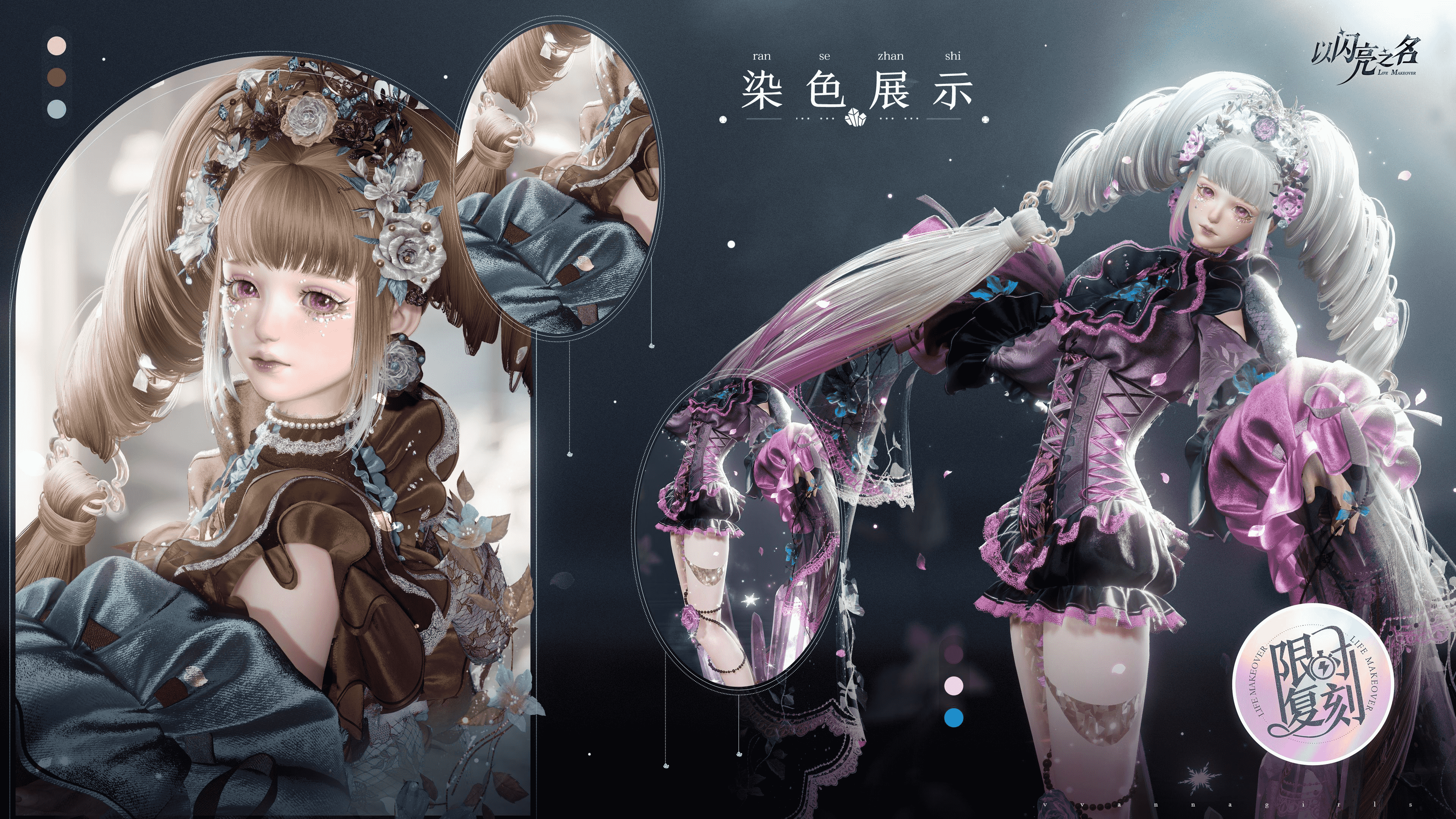 五星套装【芯璃絮语】部件增加新形态。外套【晶格飞絮】新增简约第二形态;细节拉满,给你最极致染色体验!通过时装部件详情页或时装图标左上角的【造型切换】按钮,即可自由切换部件造型。