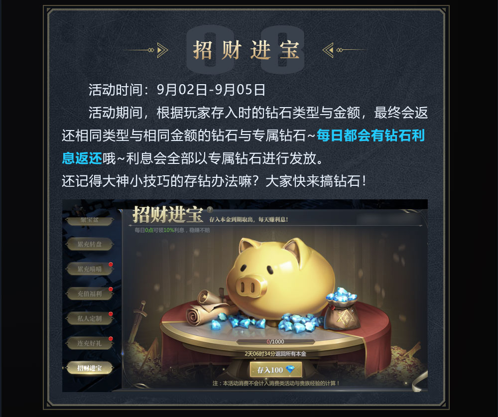 【活动速递】财力大增招财进宝钻石来咯,龙境探宝变形绕体冰火之歌来袭!内含福利~