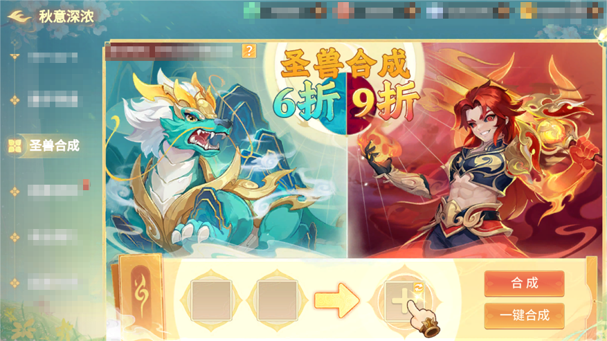 放假前夕,这周桃源里也是准备了不少活动。在秋意深浓活动中【幸运赠利】、【圣兽合成】和【集字转盘】等活动再次上线,抽取转盘集齐【天宫夺宝,月庆礼袋】即可自选礼包额外获得奖励,【圣兽合成】再返场,通过活动九折优惠合成【圣兽·赤霄】六折优惠合成【圣兽·龙山】,感兴趣的修士抓紧时间一举拿下你的心仪圣兽吧!
