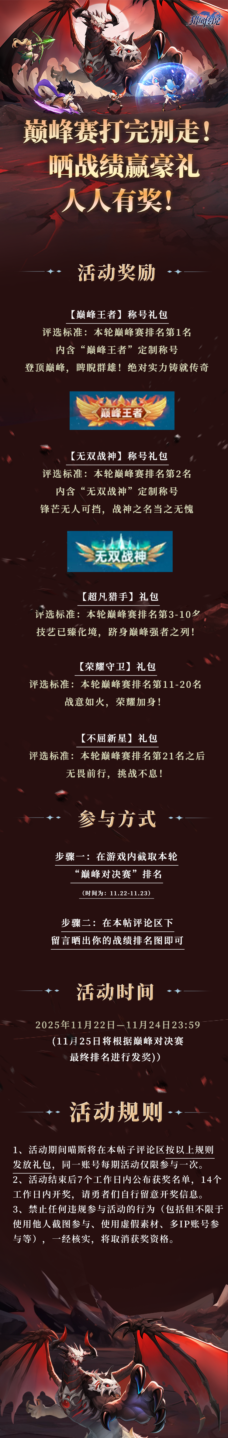 巅峰赛:11月22日 19:00-19:30 | 角逐巅峰王者