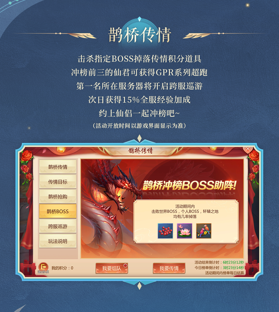 鹊桥传情第一名所在服务器将开启跨服巡游