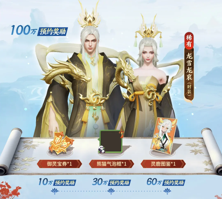 全平台预约量已突破 100万,感谢诸位仙友期待!12月26日上线即可直接领取绝版稀有时装「龙雪龙衮」,更有图鉴头像框、御灵宝券及海量养成材料相赠!