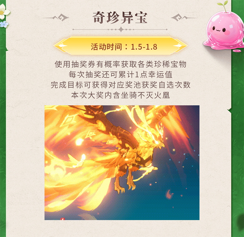 还有坐骑不灭火凰登场奇珍异宝活动