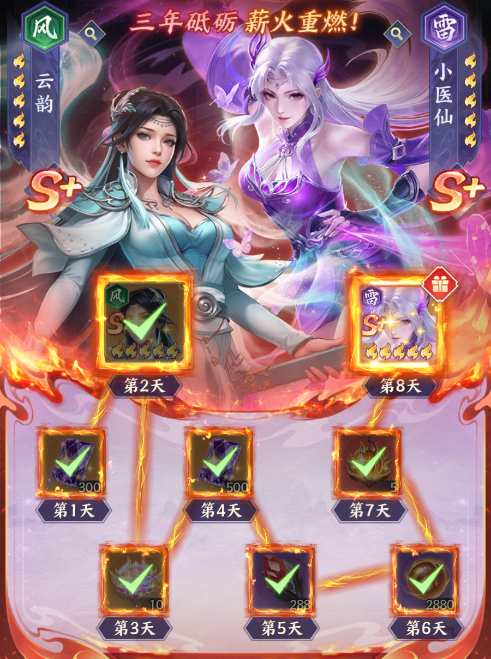 只需轻松签到八天,即可免费领取一位指定S+核心斗者!物理高伤,追击敌人于无形的云韵,核心辅助,群体治疗的小医仙,直接送给你!养成无忧,强力伙伴直接助力征途!