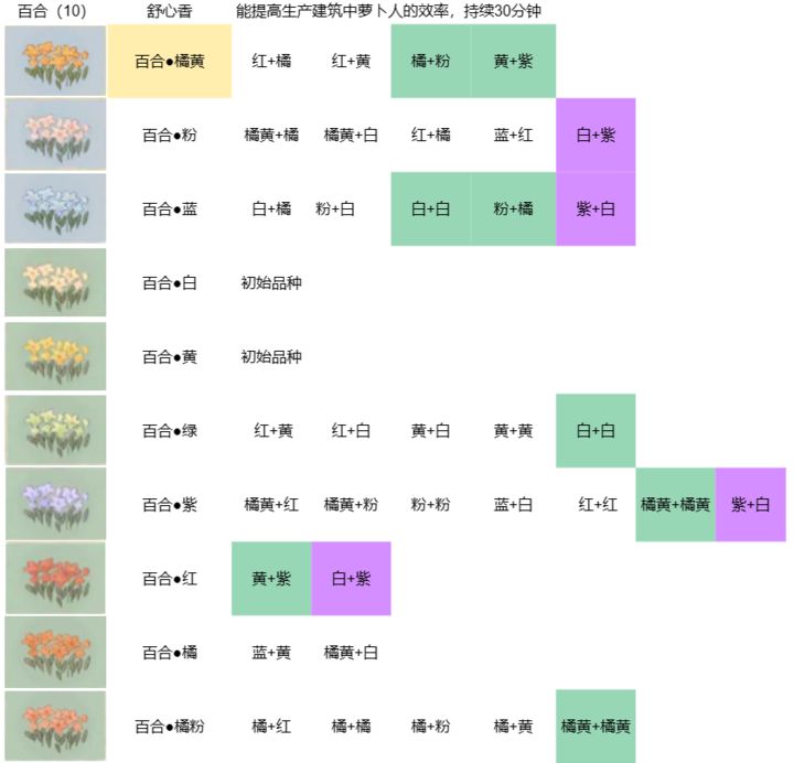 百合(蓝色背景的花是稀有花,合成几率比较小)