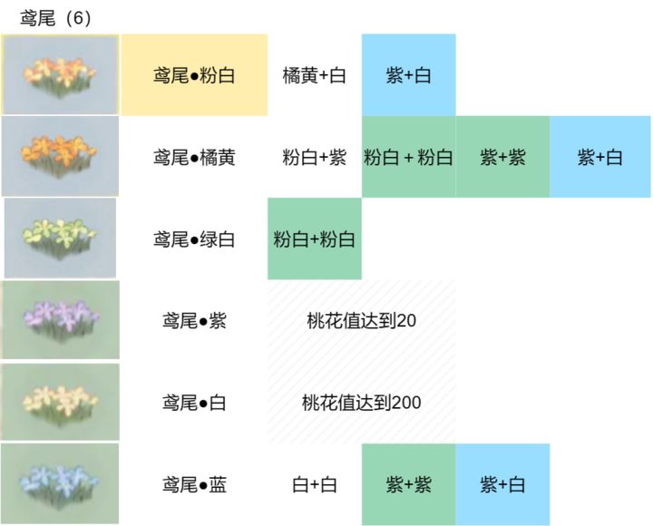 鸢尾(蓝色背景的花是稀有花,合成几率比较小)