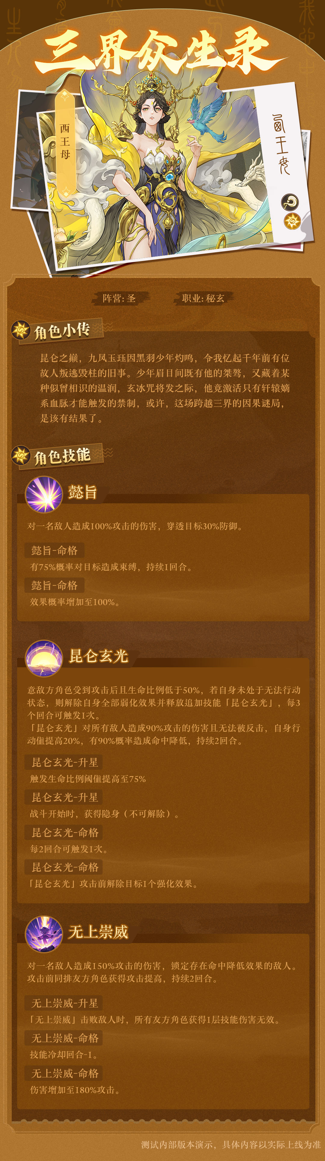 瑶池碧水,玉阙金宫。12月18日2.3(下)新版本「龙血诛邪」,星辰秘玄角色「西王母(圣)」即将返场!现已备好蟠桃琼浆,待诸位书灵前来,共赴这场横贯三千年的昆仑之约~