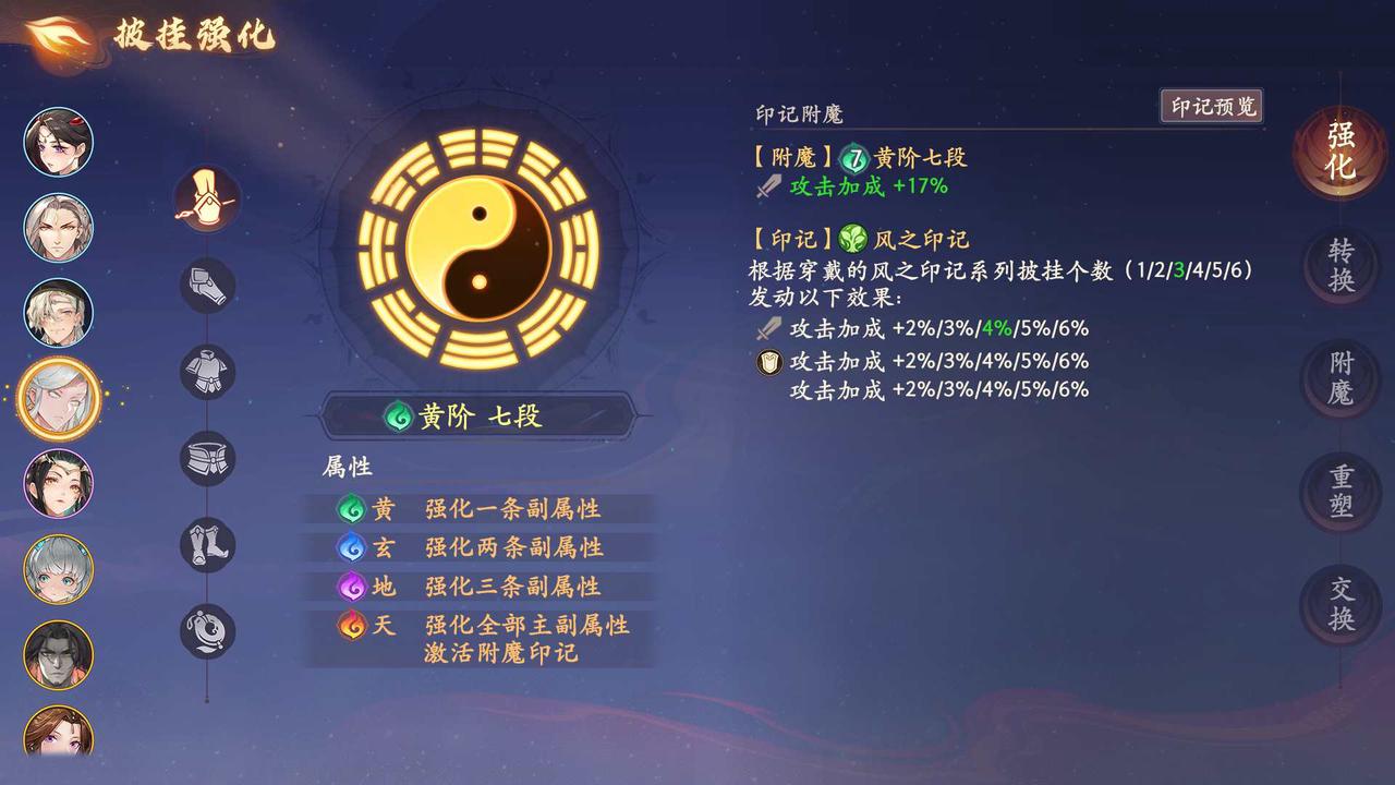 【活动说明】活动开启后,可对披挂进行铭刻,会根据披挂部位随机赋予披挂新的铭刻属性,铭刻属性可提升等级且分为黄玄地天四个阶段,每突破一个阶段,会随机强化主副属性。重塑功能可以重塑属性或印记,交换功能可以继承铭刻属性。