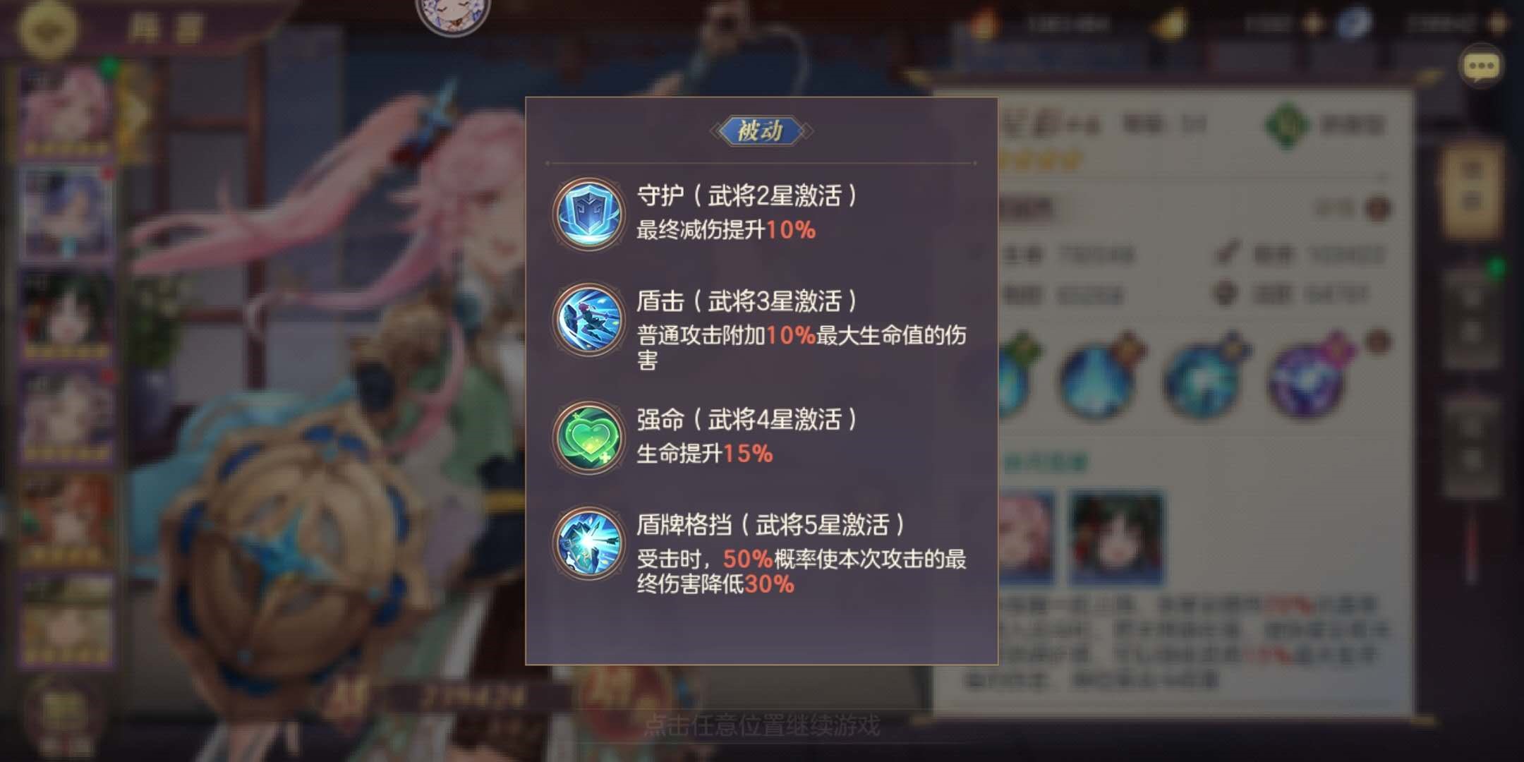 首先是蔡文姬,这个武将大家都知道,我就不放图了,毕竟现在人人都能白嫖了,提供全团5%免伤,放怒后给攻击最高友方提供15%攻击力,生命最高友方15%防御,属于很优秀的工具人。后期在貂蝉到五星后,将蔡文姬更换为貂蝉。