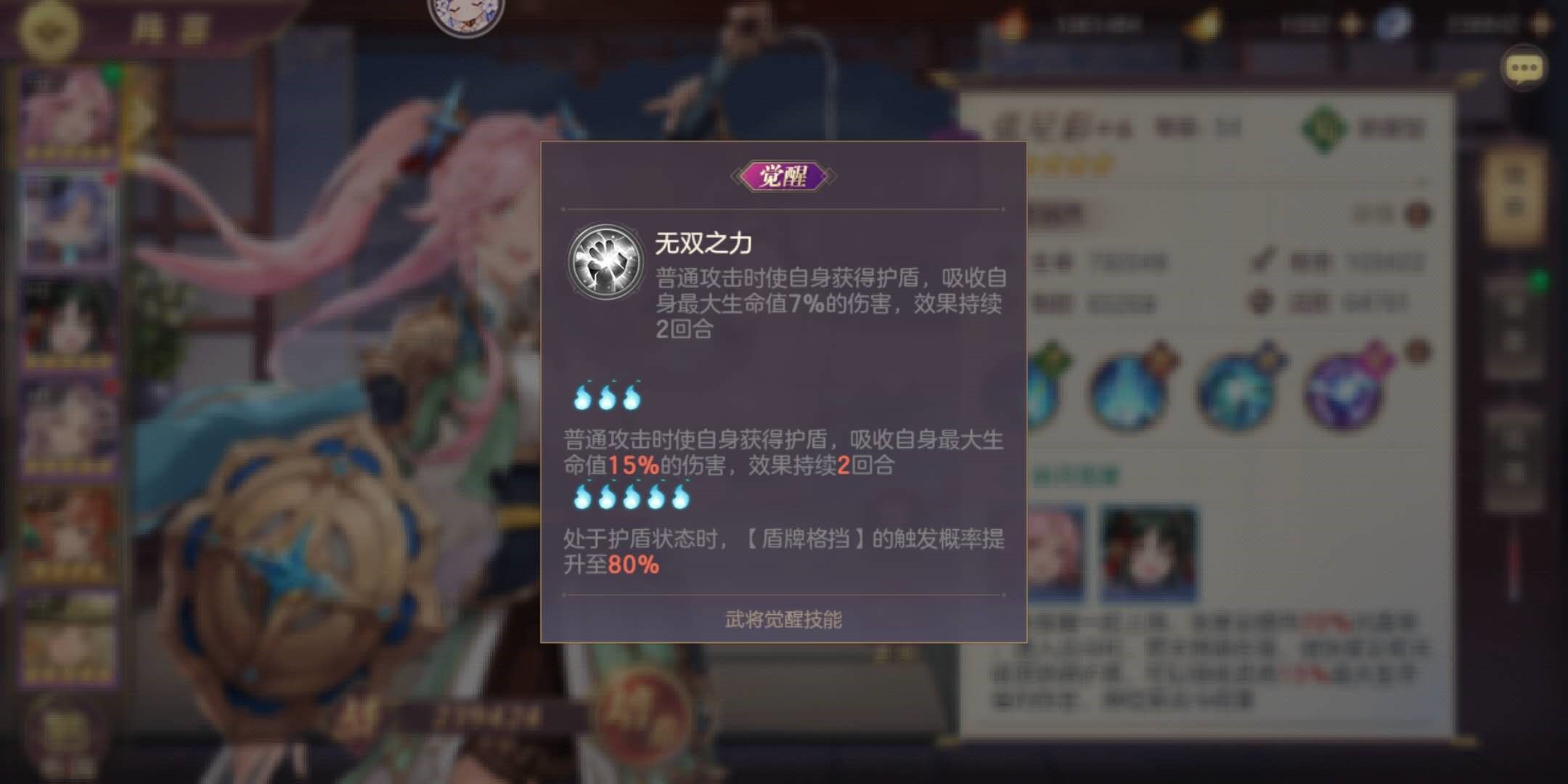 五星时候的被动,简化来看就是15%免伤,无双后的各属性均提高了张星彩的坦度,且其怒攻也会为星彩提供15%的免伤,多项叠加下来,几乎就是这个游戏最肉的存在了。