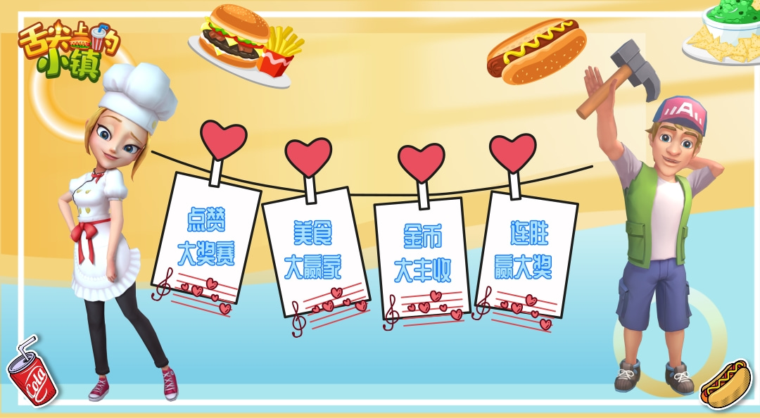 烹饪不停,快乐不止,连续闯关送送送。大助力活动每周六和每周日开始,小助力活动每周三和每周四开始,连续闯关越多,开局道具越强大,助力各位镇长畅爽闯关。