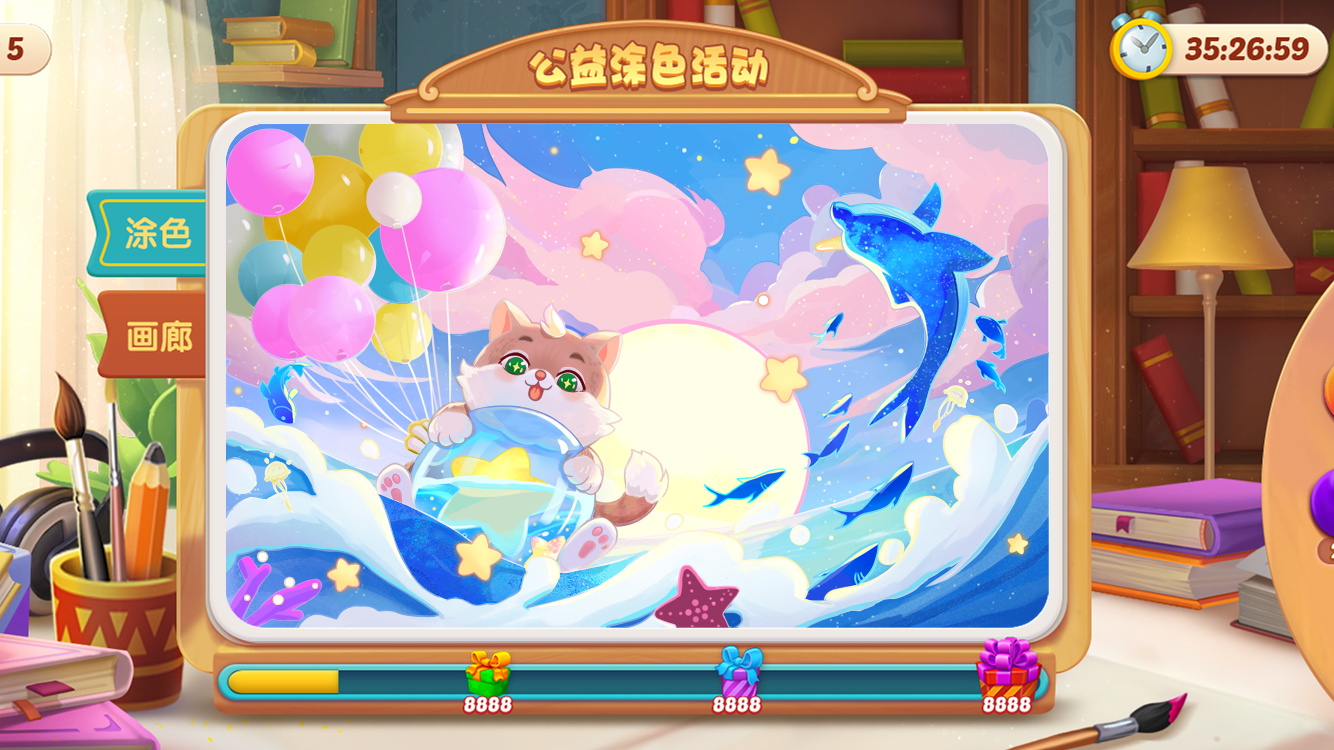 🌊活动玩法:每次闯关都会积累颜料,用颜料给家园4周年主题插画涂色。完成所有涂色,最终可获得玩家专属周年纪念插画&专属装扮——海洋喷泉ヾ(≧▽≦*)o