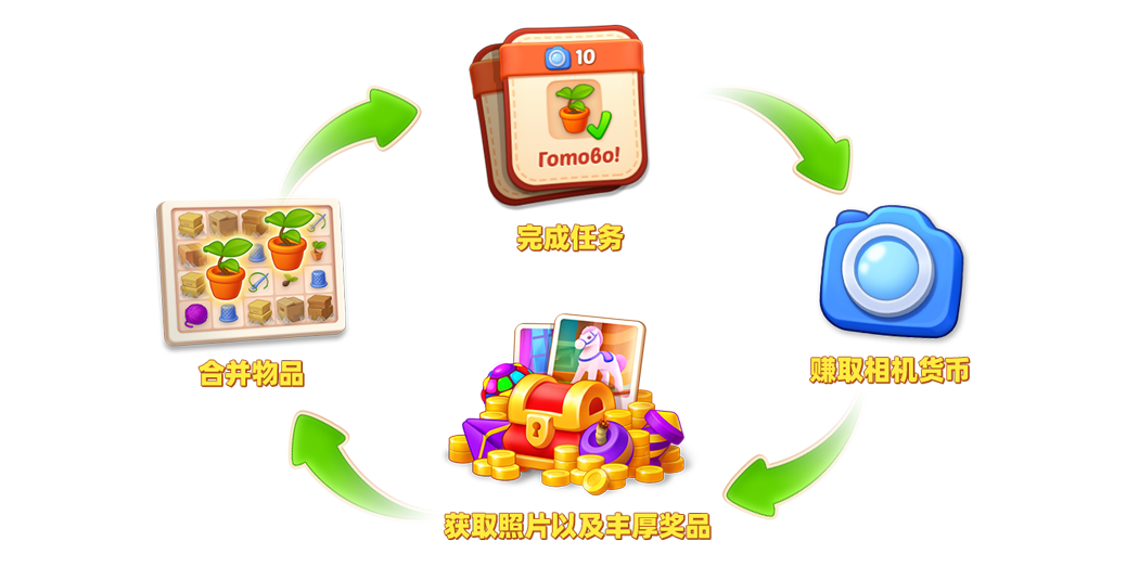 通过不断合成并提交物品收集栏所需物件累积积分,每累积18积分即可解锁一道具奖励或一段照片。