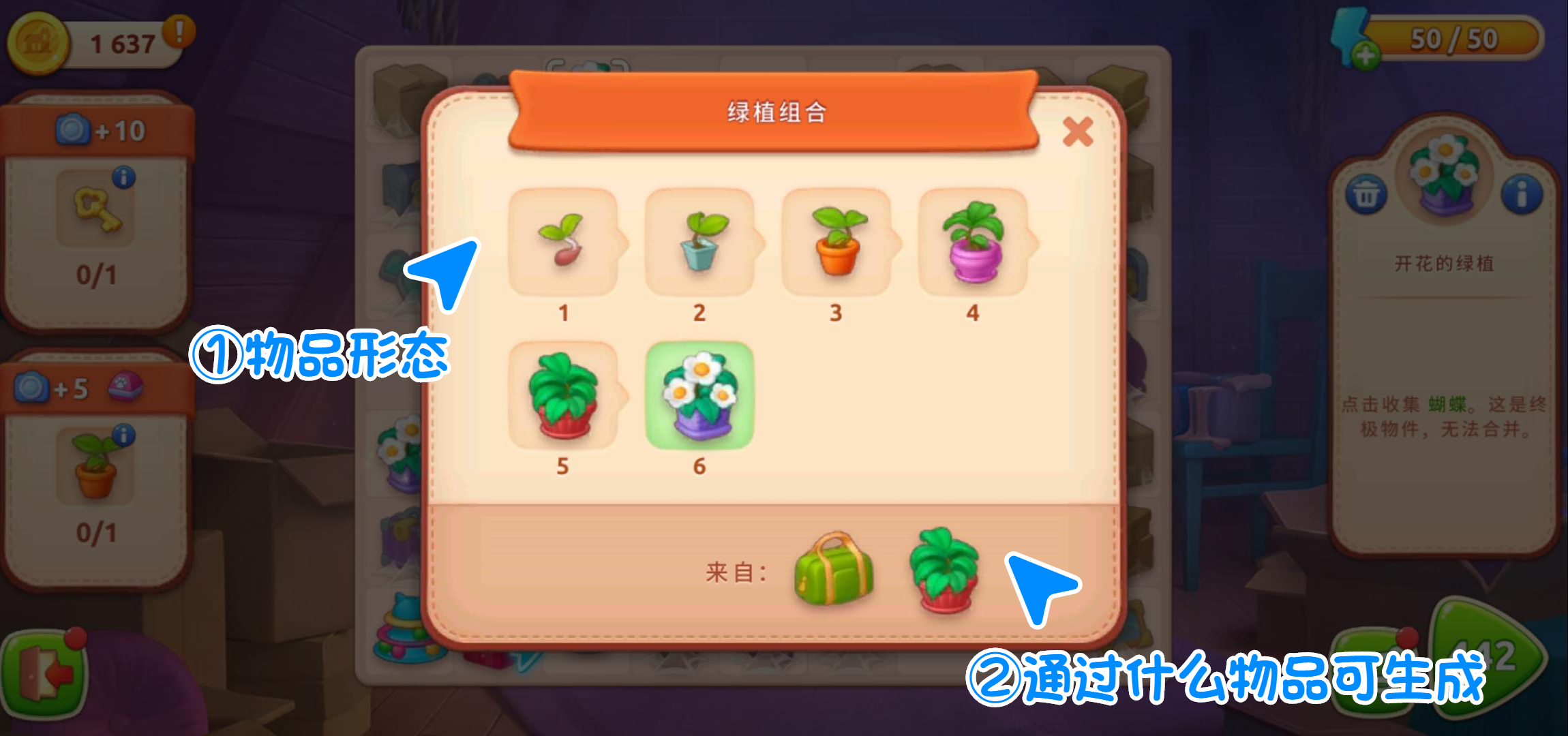 2.想了解物品来源和形态→先点击物品→点击介绍栏内的感叹号→展开物品信息
