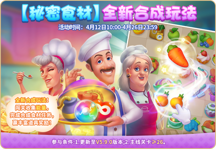 全新玩法:合成“秘密食材”活动时间:4月12日10:00-4月26日23:59