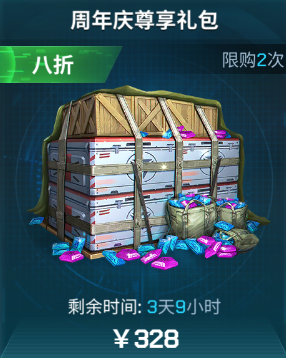 5、购买1次328元钻石礼包,[钻石]*2500,(奖励限制次数:2次)