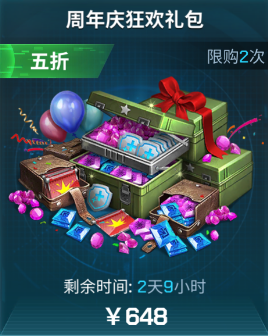 6、购买1次648元钻石礼包,[钻石]*6000,(奖励限制次数:2次)