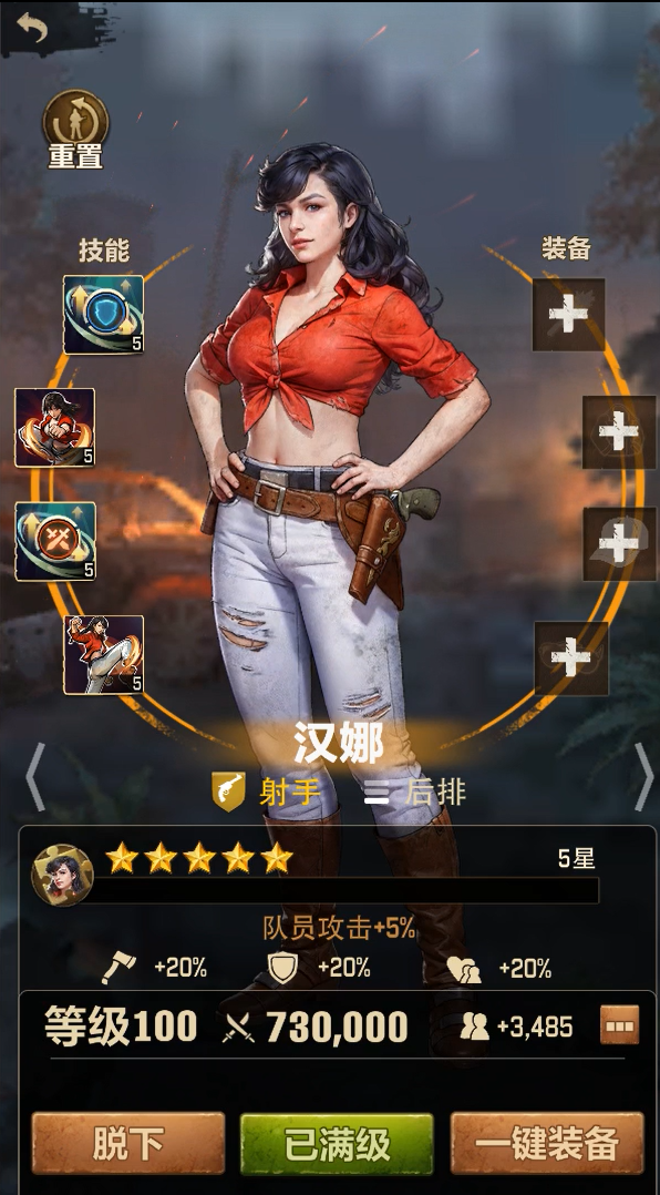 此外,汉娜还能够为我方提供额外的5%攻击力加成,让队伍能够更快的突破敌人的阵线直取要害。指挥官们要是喜欢强攻阵容,那么汉娜的加入绝对会让队伍更加的强而有力!