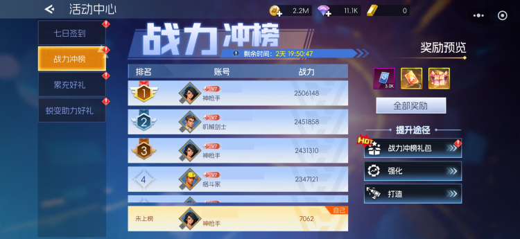 通过强化装备、提升宠物、更新时装等方式快速提升战力,用实力争夺名次,获得稀有的专属称号、史诗卡片、点券等丰厚奖励哦!战力提升的秘诀都在之前的攻略“开服玩法速递——养成篇”啦,快来学习技巧吧!