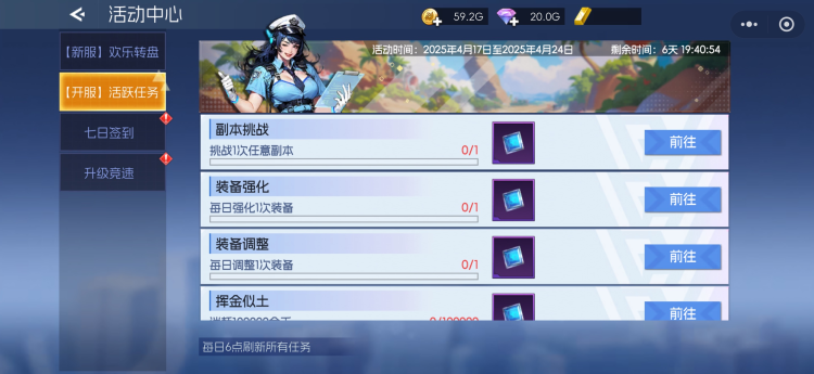 参与“开服活跃”活动,完成活跃任务即可获得“幸运星”,免费参与欢乐转盘活动!任务不算困难,礼物拿到手软!