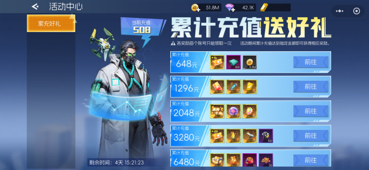 达成累计充值目标,获得丰厚好礼!活动期间只要累计充值达到指定金额就可以获得相应奖励哦!