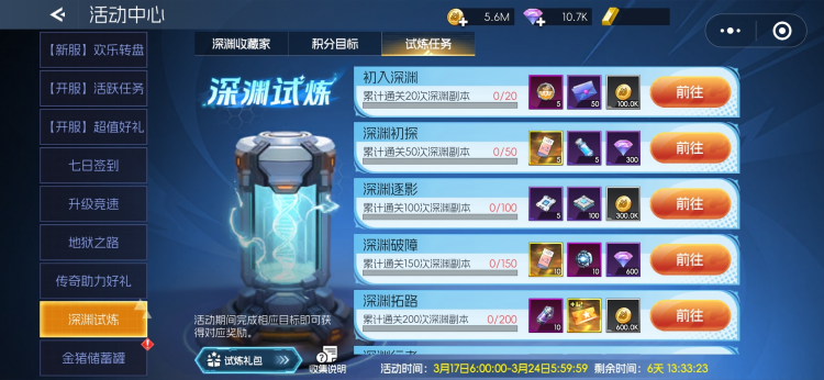 深渊试炼任务:在活动期间累计通关深渊副本达到指定次数可获得惊喜好礼。