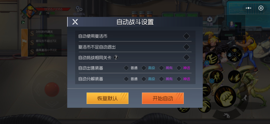 (注意:自动战斗不会使用观看视频复活的特权。)