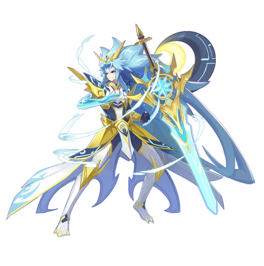 他是另一个世界的圣天伊与神武月,通过「超精灵同化」之后,所诞生的强大亚比。他手中的辉月剑,传说来自月亮女神塞伦妮的恩赐。