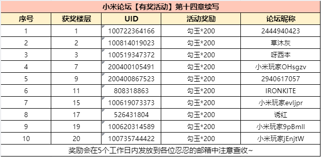 2、各位忍忍请按照示例格式进行回复,我们将根据回复内容抽取十位忍忍获得“200勾玉”一份。