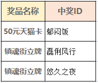 50元天猫卡一张,抽取2名幸运儿每人获得