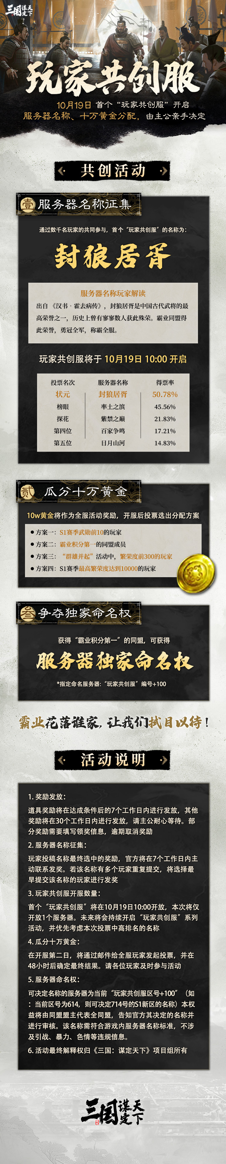 首个“玩家共创服”即将开启,诚邀各位主公10月19日10点准时参战!