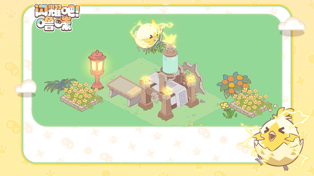 作为电属性的噜咪,噼啪蛋用自身能量供电,就可以使「精密制卡台」顺利运转起来~