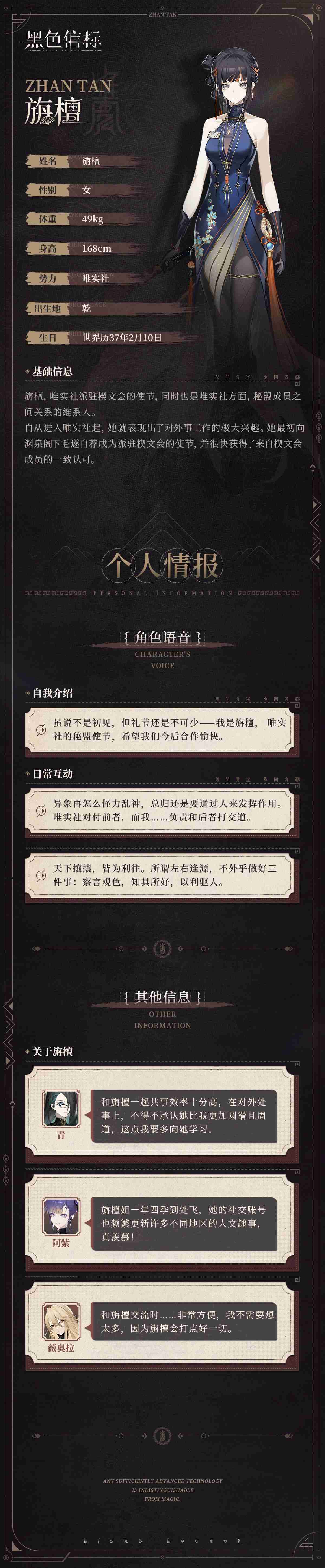 #黑色信标##旃檀##免费赠送#>>>唯实社-成员秘录|旃檀「虽说不是初见,但礼节还是不可少——我是旃檀, 唯实社的秘盟使节,希望我们今后合作愉快。」▶ 2026年1月4日 10:00:00 ~ 2026年2月3日 09:59:59期间,所有完成主线1-4的预见者,登录游戏即可免费领取5星限定角色「旃檀」!