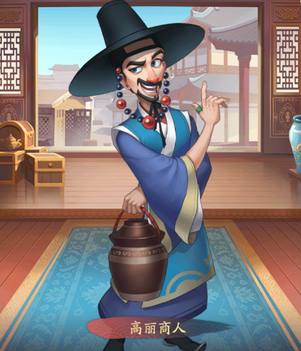 玩家在游戏里可与天竺、东瀛、高丽等外国经商贸易,各国商人皆伴随着颇具文化特色的服饰和物品出现,十分考究,赏心悦目。比如高丽商人头戴黑笠,手里拎着泡菜坛子~
