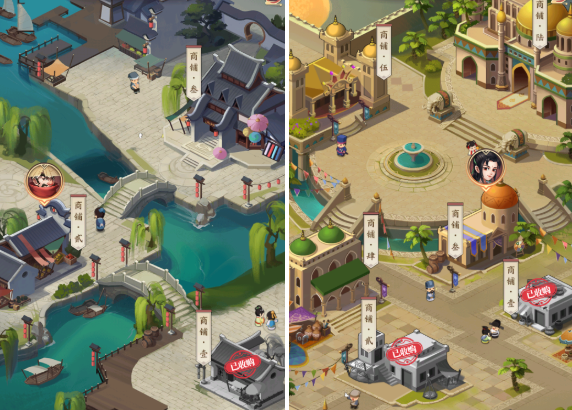 此外,当玩家开始境外通商时,也能感受到地图卷轴中呈现出了与江南水乡古朴秀雅不同的异域景致,如此细心设置,能让玩家更有身临其境的真实感。