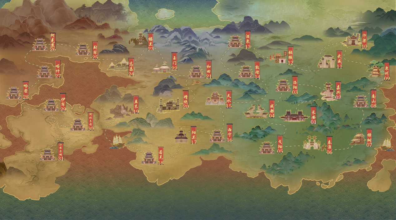 虽然游戏看上去插科打诨,但文化内蕴一点不少。游戏地图灵感来源于《丝路山水图》,地图中的关卡城市还原了丝绸之路沿线城市,让玩家在游戏里重走丝绸之路,感受古商贸文化魅力。