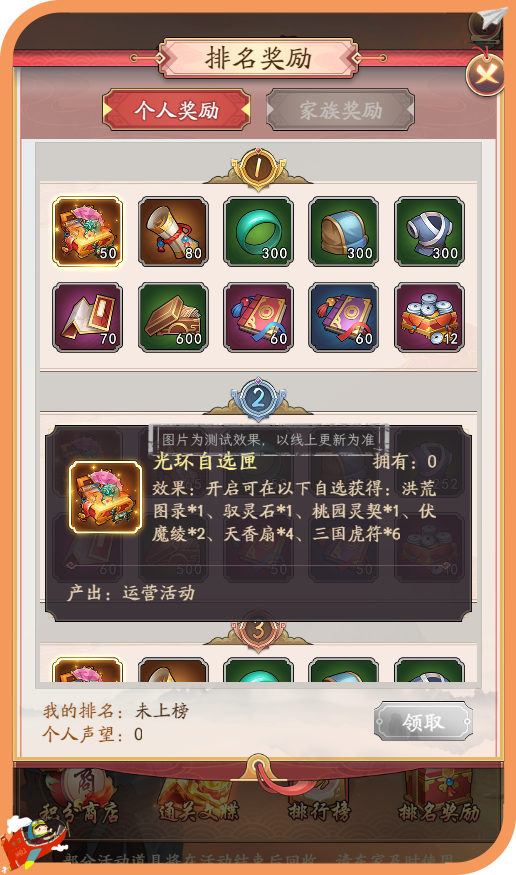 ①羿神狩礼嘉奖概率调整。增加排名11-20,21-50名的获得羿神狩礼嘉奖概率。