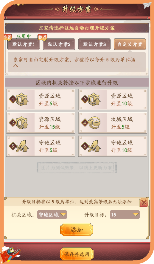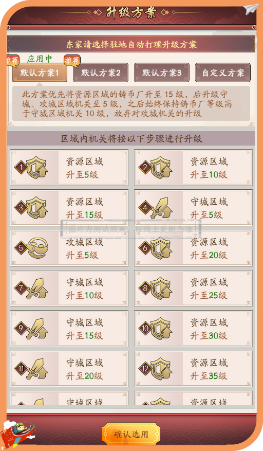 ⭐设置时,按同区域从左到右的顺序逐个进行,直至单个机关达成升级目标,才会继续对同区域下个机关进行升级。