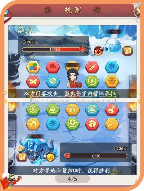 4、双方门客进行攻击时,溢出的伤害由营地承担,对方血量归零时,即可获得胜利。