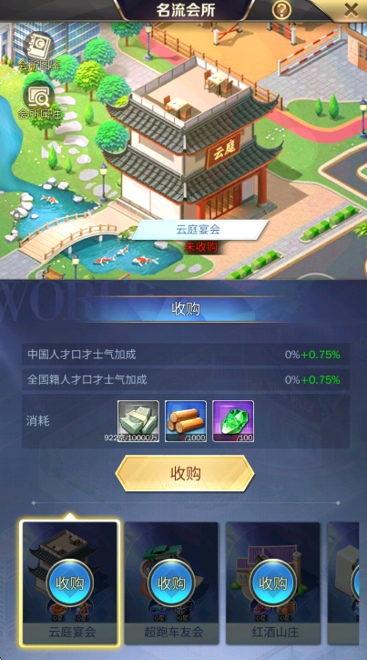 - 只有收购成功,才能解锁该会所对应的“扩建”和“设施升级”两大养成内容。