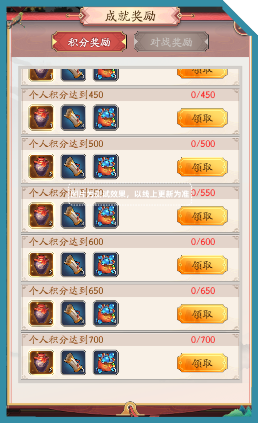 成就奖励:分为积分奖励、对战奖励;达到条件后可领取。
