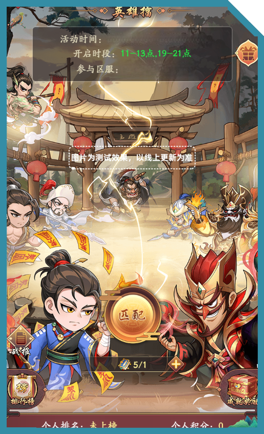 匹配:活动期间开启时段可进行匹配,对战规则和关卡一致。