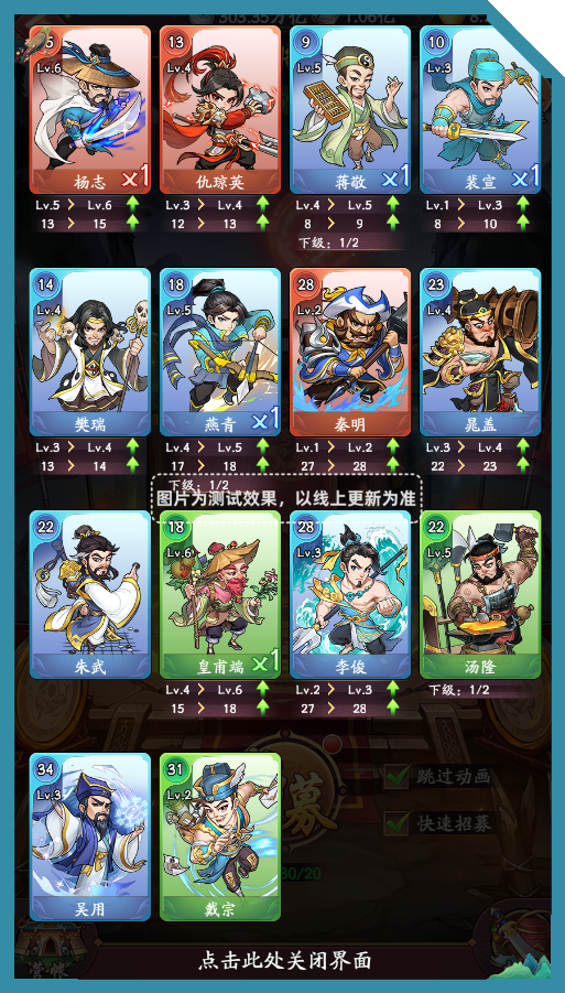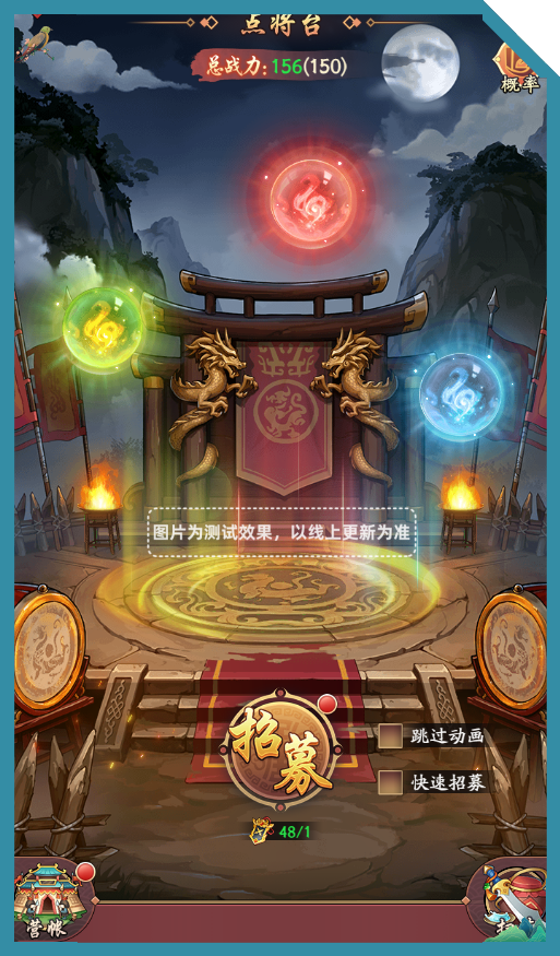 东家通过消耗「点将令」在点将台中招募英雄或提升已拥有的英雄。
