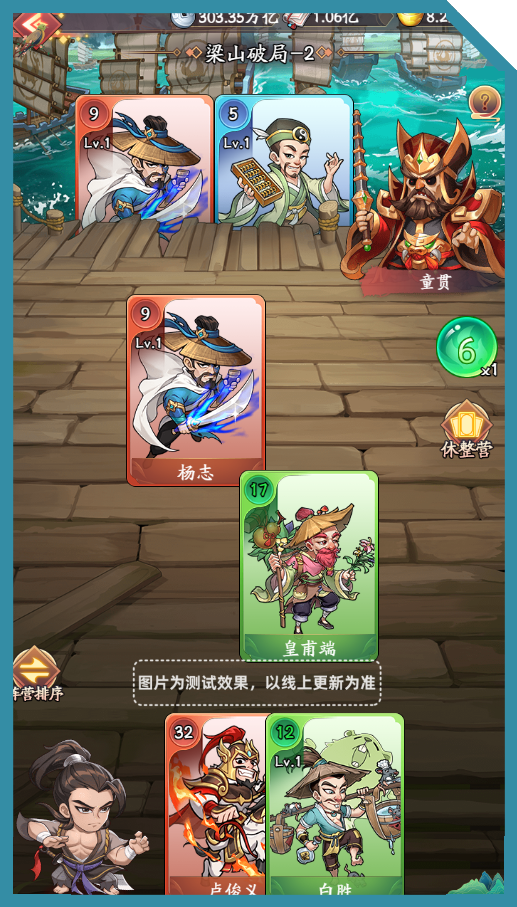 战斗比拼:双方英雄比拼战力,战力高的一方获胜,胜利的英雄进入修整营;失败的英雄加入胜利者手牌;若双方战力相同,则平局,双方英雄均进入修整营。