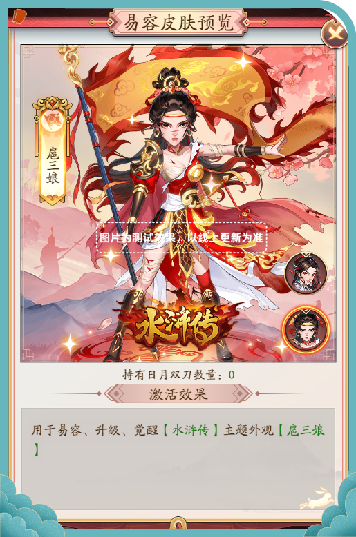 ◆「日月双刀」用于激活水浒传主题外观【扈三娘】。