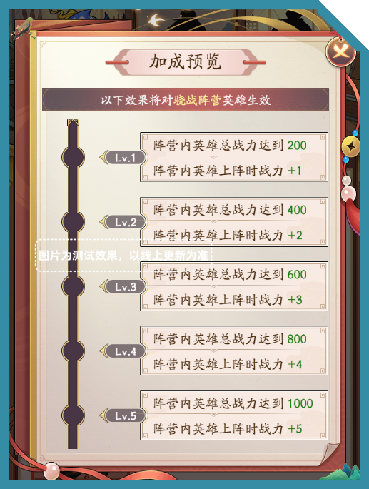 同阵营卡牌总战力达到指定值时,对局期间可以获得阵营战力加成,各阵营加成效果独立。